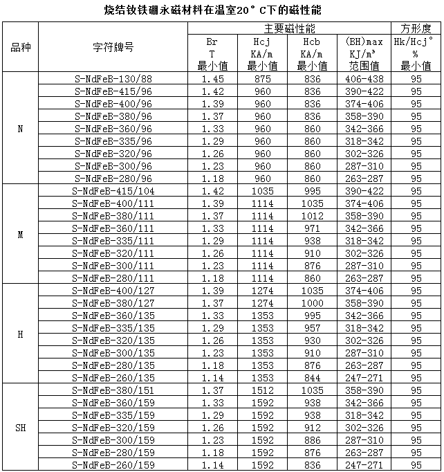 釹鐵硼磁鐵為至目前為止具有最強磁力的永久磁鐵。材料牌號有N35-N52 ;各種形狀可按具體要求加工:圓形,方塊,打孔,磁瓦,磁棒,凸型,梯形等;盡管有這些優(yōu)點(diǎn),但是表面容易生銹,所以通常需要作一些保護性表面處理:鍍鎳,鍍鋅,鍍金 ,鍍環(huán)氧樹(shù)脂等。普通釹鐵硼磁鐵的適用的環(huán)境溫度是80度以下,但也有幾種能耐200度高溫的。主要應用于電子、電器、包裝、電機、俱皮具汽車(chē)機械等。